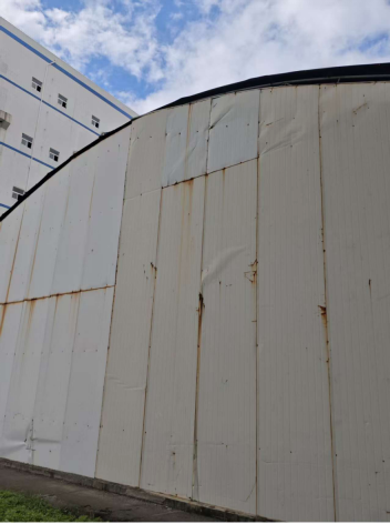 發(fā)現(xiàn)圓煤倉大門北側(cè)車棚松動(dòng)、立即加固